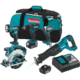 The Makita 18V LXT? Lithium-Ion Compact 3-Piece Combo Kit (CT322R) is built for the pro user who demands best-in-class Lithium-Ion cordless tools for drilling, driving, and fastening in a compact size. The kit includes a 1/2″ driver-drill and an impact driver, as well as an L.E.D. Flashlight, charger, and two 18V LXT? Lithium-Ion Compact batteries for use with Makita’s expanding range of 18V cordless tools. The CT322R includes a 1/2? driver-drill with 480 in.lbs. of torque that weighs only 3.3 lbs., and a versatile impact driver with 1,460 in.lbs. of torque that weighs only 2.8 lbs. (both weights with 1.5Ah battery), and a flashlight with 6 L.E.D. bulbs that deliver 500 lumens brightness for portable illumination. It?s part of Makita?s expanding 18V Lithium-Ion system, the world?s largest cordless tool system powered by 18V Lithium-Ion slide-style batteries. Makita 18V Lithium-Ion batteries have the fastest charge times in their categories, so they spend more time working and less time sitting on the charger. For improved tool performance and extended battery life, Makita created Star Protection Computer Controls?. Star Protection is communication technology that allows the Star Protection-equipped tool and battery to exchange data in real time and monitor conditions during use to protect against overloading, over-discharging and overheating. For increased versatility, the tool can also be powered by Makita 18V LXT? and Compact Lithium-Ion batteries with the star symbol on the battery indicating Star Protection inside.